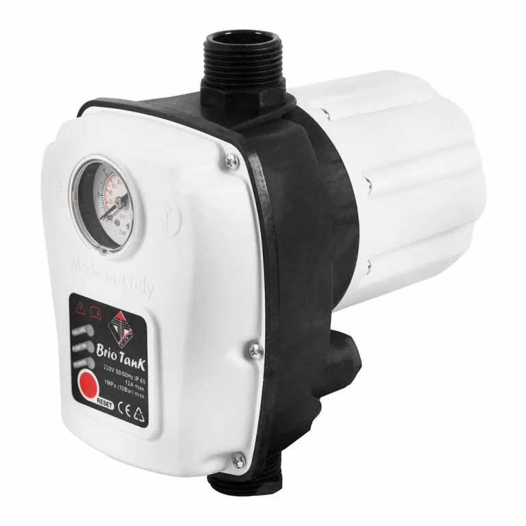 Устройство управления насосами Italtecnica BRIO TANK представляет собой электронное устройство контроля потока и давления воды в системе водоснабжения с защитой от "сухого" хода. Служит для автоматизации работы однофазных электронасосов с мощностью до 2 л.с. Принцип работы устройства состоит в том, что при достижении минимального значения давления в системе насос включается, а при достижении максимального - выключается. В отличие от аналогичных устройств, Italtecnica BRIO TANK имеет встроенный гидроаккумулятор объемом 0.4 литра со сменной EPDM мембраной, а также имеет встроенный манометр, защиту от "сухого" хода и гидравлического удара. BRIO TANK имеет гидравлическое соединение 1" Папа. Устанавливается как в вертикальном, так и горизонтальном виде в соответствии с направлением потока.