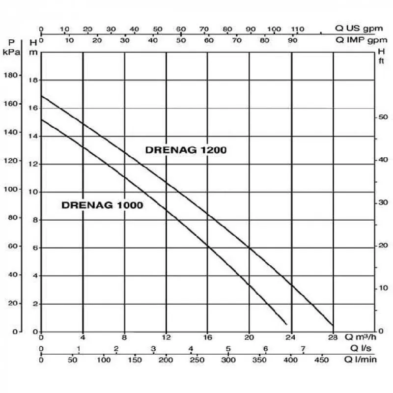 Графические характеристики дренажного насоса DAB DRENAG 1200 M-A