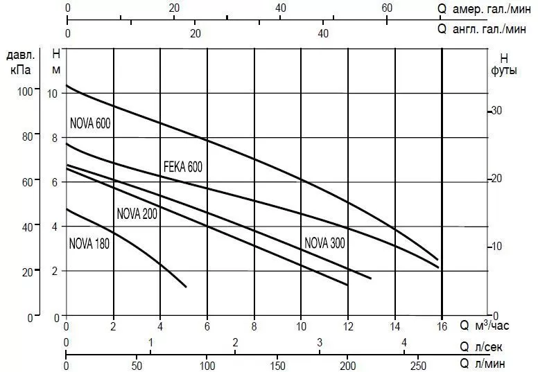 Графические характеристики дренажного насоса DUB NOVA UP 600MNA