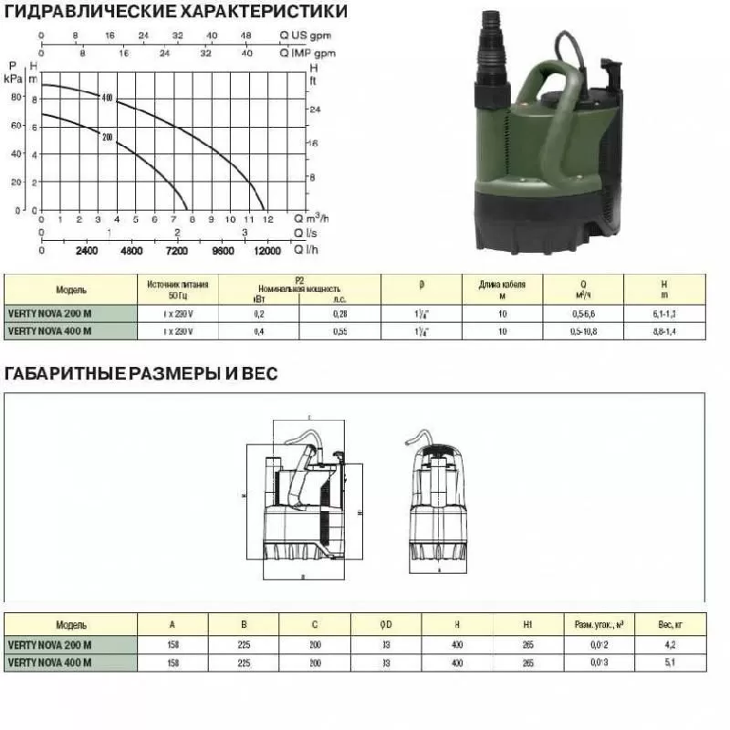 Графические характеристики дренажного насоса DAB VERTY NOVA 400 M