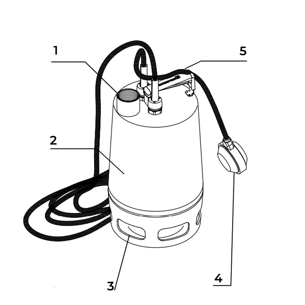 Поплавковый выключатель: Некоторые модели насосов Unilift AP оснащены поплавковым выключателем. Поплавок, который плавает на поверхности жидкости, автоматически включает и выключает насос в зависимости от уровня жидкости в емкости. Разница между уровнем включения и выключения может быть настроена путем регулировки длины закрепленного на насосе конца кабеля.