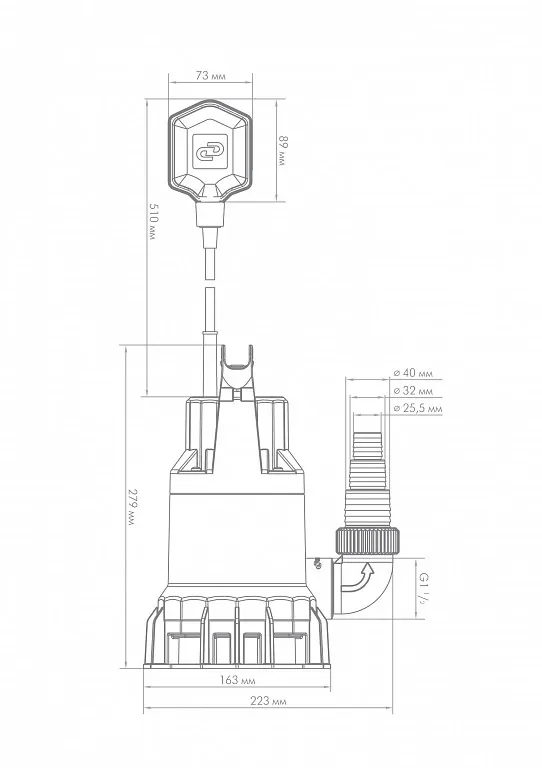 - Для нормальной работы поплавкового выключателя необходимо пространство не менее чем 500х500 мм.