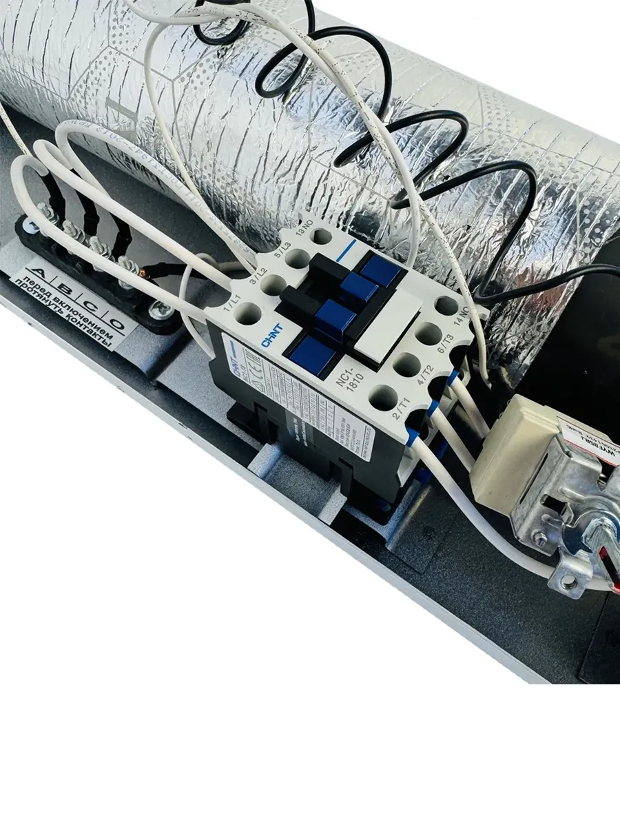 Котёл оснащен тремя независимыми ТЭНами по 4 кВт каждый, что реализует функцию трехступенчатой регулировки мощности (4/8/12 кВт). Это позволяет точно адаптировать работу оборудования под текущие теплопотребности, избегая перерасхода электроэнергии в межсезонье и в мягкие зимы, и обеспечивая максимальную мощность в сильные морозы.