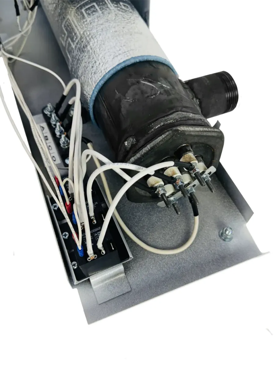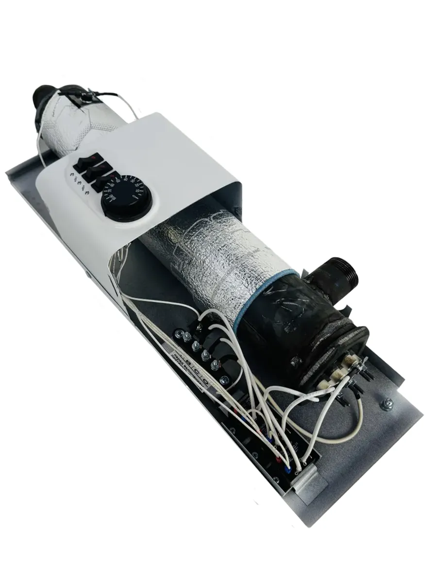 Ступенчатая регулировка мощности: Блок ТЭНов сконфигурирован по схеме 3+3+3 кВт, что позволяет гибко управлять потреблением электроэнергии и подстраивать работу под текущие потребности в тепле.