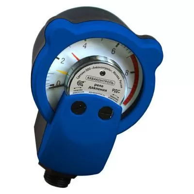 РДС-А реле давления воды стрелочное - устройство, способное заменить стандартное электромеханическое реле давления и манометр. Предназначено для обеспечения автоматической работы однофазных насосов в системах водоснабжения и полива, а также защиты насоса от работы по «сухому» ходу. Предельно допустимые значения включения и выключения насоса визуально устанавливаются с помощью регулировочных винтов и разноцветных стрелочных указателей (маркеров), что дает возможность легко зафиксировать пороги включения и выключения насоса, а встроенный манометр позволяет контролировать текущее давление в системе водоснабжения.