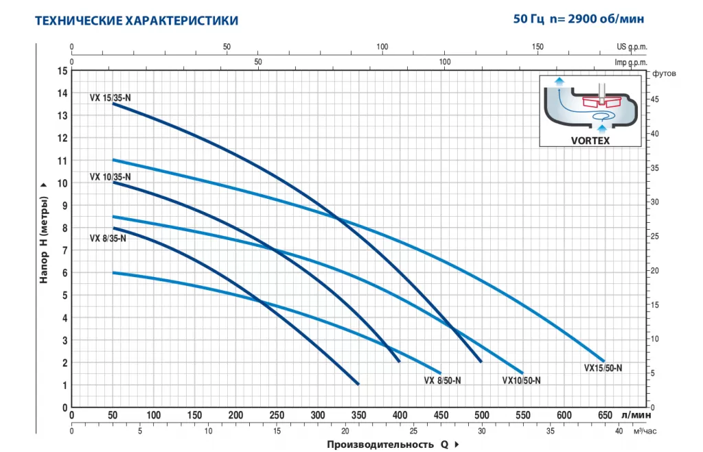 Графические характеристики фекального насоса PEDROLLO VXM 8/35
