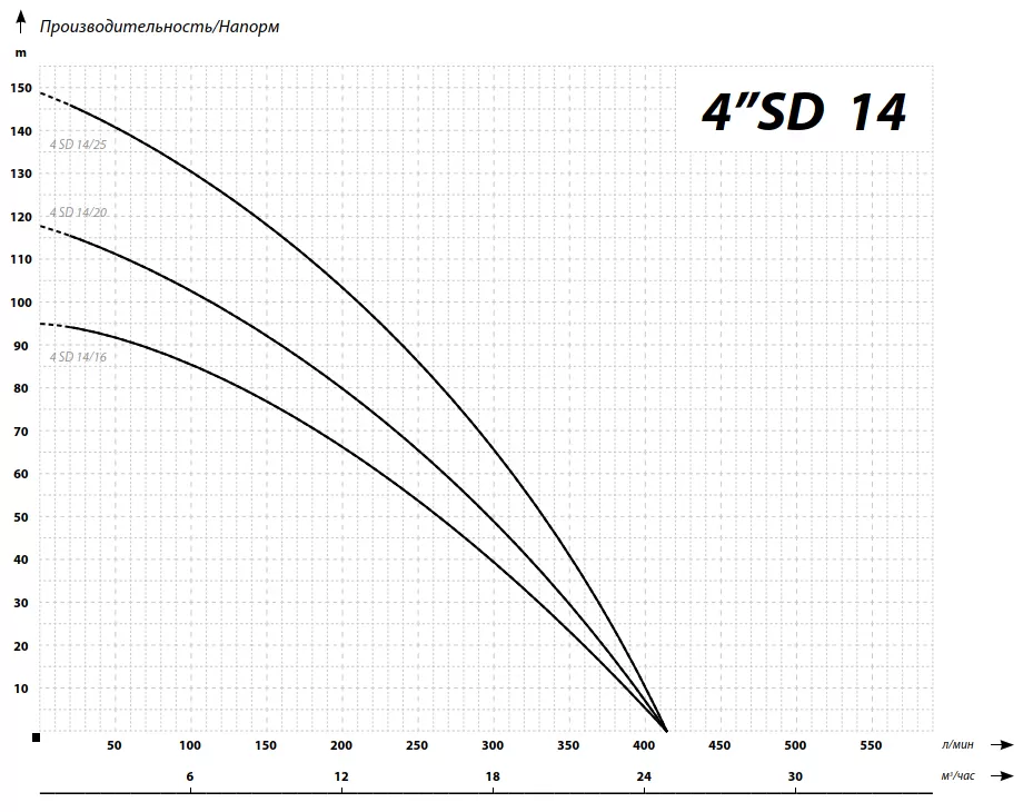 Трехфазный глубинный погружной насос IBO 4SD 14/25 (380В) диаметром 98 мм с повышенной устойчивостью к песку. Насос IBO 4SD 14/25 (380В) доступен к покупке с двигателями IBO и итальянскими двигателями IBO ITALY. В насосе IBO 4SD 14/25 (380В) используется технология «плавающих лопастных колес», а также для основных рабочих элементов насоса применяются износостойкие материалы: латунный нагнетательный патрубок, корпус, вал и сетка фильтра выполнены из нержавеющей стали AISI 304 / а также лопастные колеса выполнены из высококачественной пластмассы, Благодаря этому насос IBO 4SD 14/25 (380В) имеет повышенную стойкость к песку. Насос комплектуется кабелем 1 м, по желанию его можно нарастить до нужного размера. Скважинный насос IBO 4SD 14/25 (380В) имеет отличные характеристики. Напор насоса в максимальной точке составляет 149 м, а производительность достигает максимального показателя в 24.9 м³/час. Мощность двигателя составляет 7500 Вт, то вполне неплохо для насоса с такими напорно-расходными характеристиками. Насосы серии SD марки ИБО были первыми насосами на рынке, названными «анти–песочными». Они по прежнему являются одними из немногих скважинных насосов на рынке, которые имеют конструкции с такой высокой устойчивостью к песку. Максимальное содержание песка в воде – до 5%. Насос IBO 4SD 14/25 (380В) можно применять как аналог насосов ЭЦВ.