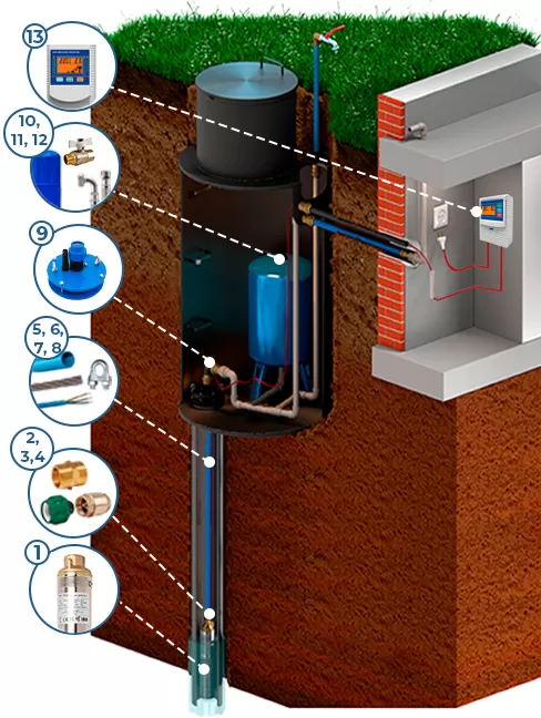 Обеспечение крупных ферм водой из глубоких водозаборов, орошение садов и огородов, питомников деревьев и кустарников, осушение территорий, сантехника, промышленность.Установка скважинного насоса IBO 4SD 16/18 (380В)