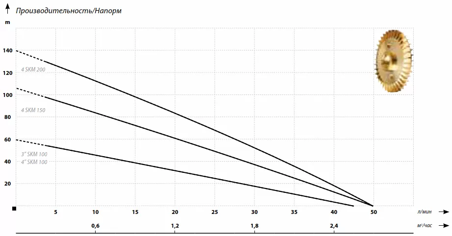 Погружной вихревой скважинный насос IBO 4SKM 100 INOX отличается хорошей конструкцией. Гидравлическая часть насоса встроена непосредственно в вал двигателя. Насос изготовлен из хороших конструкционных материалов, корпус двигателя насоса изготовлен из нержавеющей стали, такие же втулки рабочего колеса и приводной вал, рабочее колесо и корпус напорной части производятся из латуни. Диаметр насоса 98 мм ( 4" ), но он легко помещается в скважину диаметром 125мм. В насосе используется маслозаполненный двигатель. Масло обеспечивает полную смазку подшипников двигателя, что гарантирует долгие годы эксплуатации без обслуживания. Насос может запускаться до 20 раз в час, что является хорошим результатом по сравнению с другими более дешевыми скважинными насосами. Насос оснащен однофазным двигателем мощностью 750 Вт. Максимальный напор насоса составляет 60 м, производительность насоса в максимальной точке достигает 2.7 м³/час. IBO 4SKM 100 INOX комплектуется с завода кабелем 15 м.