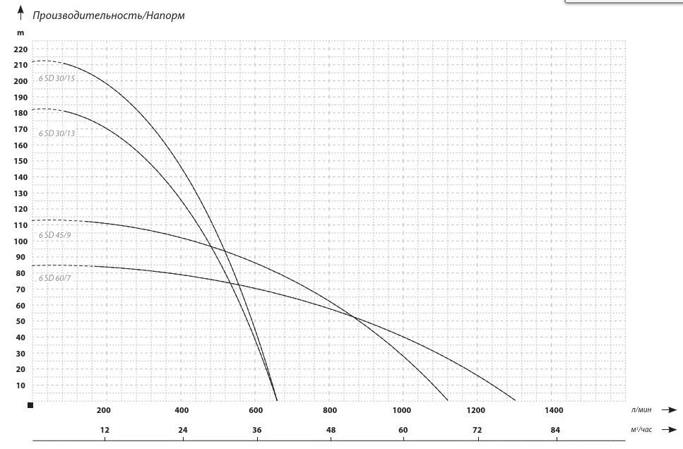 Трехфазный скважинный погружной насос IBO 6SD 60/7 (380 В) диаметром 146 мм с повышенной устойчивостью к песку. Насос IBO 6SD 60/7 (380 В) доступен к покупке с двигателями IBO и итальянскими двигателями IBO ITALY. В насосе IBO 6SD 60/7 (380 В) используется технология «плавающих лопастных колес», а также для основных рабочих элементов насоса применяются износостойкие материалы: латунный нагнетательный патрубок, корпус, вал и сетка фильтра выполнены из нержавеющей стали AISI 304 / а также лопастные колеса выполнены из высококачественной пластмассы, Благодаря этому насос IBO 6SD 60/7 (380 В) имеет повышенную стойкость к песку. Насос комплектуется кабелем 1 м, по желанию его можно нарастить до нужного размера. Скважинный насос IBO 6SD 60/7 (380 В) имеет отличные характеристики. Напор насоса в максимальной точке составляет 85 м, а производительность достигает максимального показателя в 78 м³/час. Мощность двигателя составляет 15000 Вт, то вполне неплохо для насоса с такими напорно-расходными характеристиками. Насосы серии SD марки ИБО были первыми насосами на рынке, названными «анти–песочными». Они по прежнему являются одними из немногих скважинных насосов на рынке, которые имеют конструкции с такой высокой устойчивостью к песку. Максимальное содержание песка в воде – до 5%. Насос IBO 6SD 60/7 (380 В) можно применять как аналог насосов ЭЦВ.