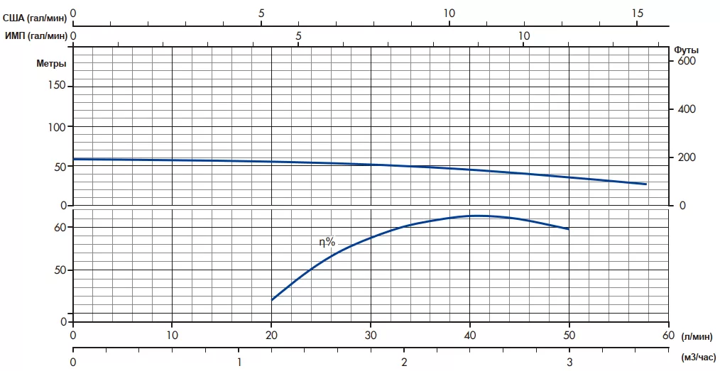Максимальное количество метров на которое насос может поднять воду.