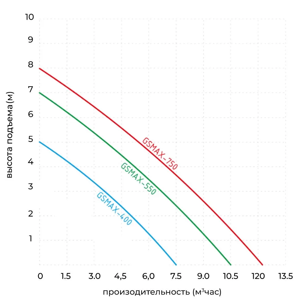 С различными вариантами подключения (дюймовый размер 1, 1¼, 1½) насос GSMAX-550 готов к интеграции в разнообразные системы. Благодаря своей длинной кабельной линии в 8 метров, он обеспечивает удобство использования и гибкость в установке.