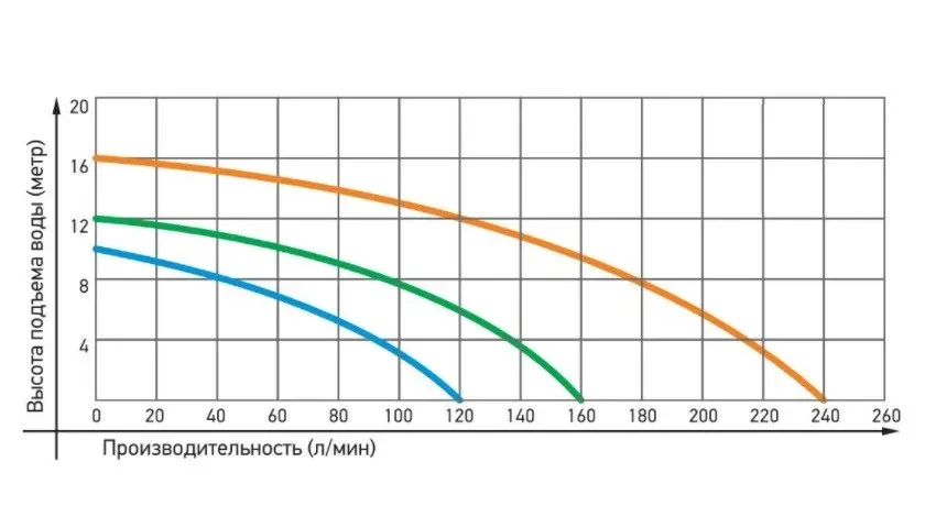 Графические характеристики циркуляционного насоса JEMIX WRF 50/10