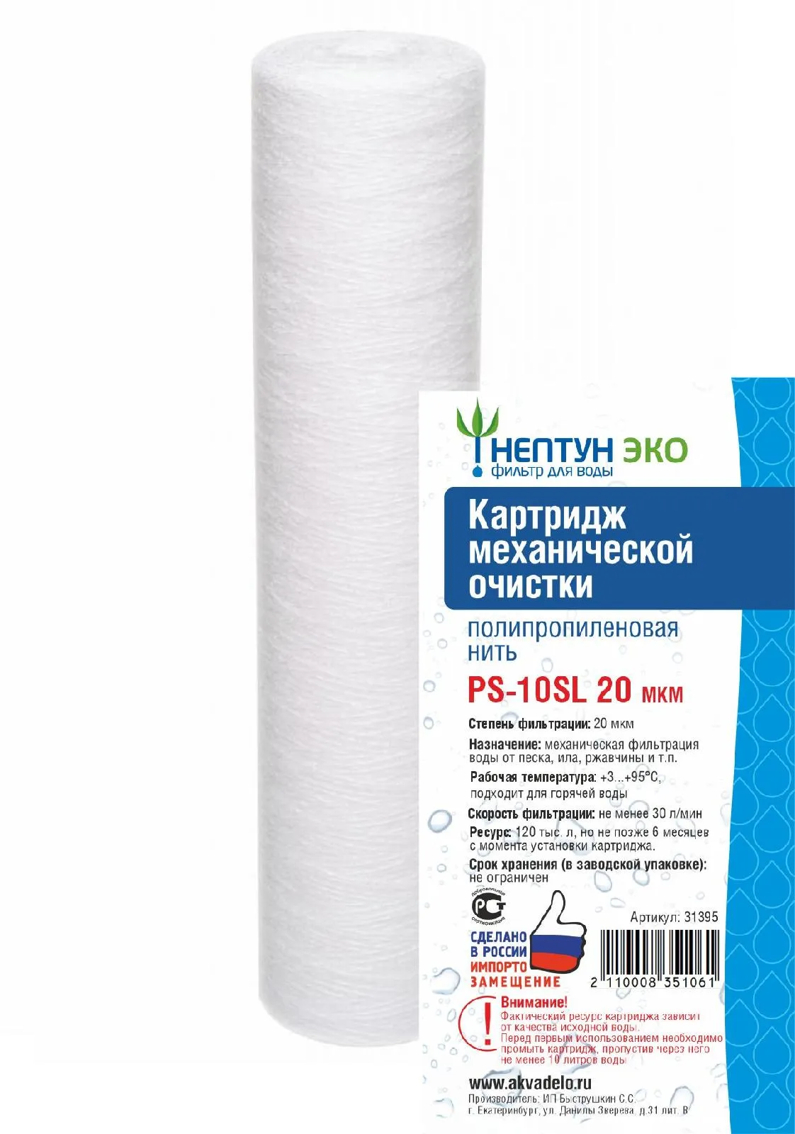 Повышенный ресурс: На 20-30% больше, чем у картриджей из нетканого полипропилена, благодаря использованию специальной пневмотекстурированной (ворсистой) нити.
