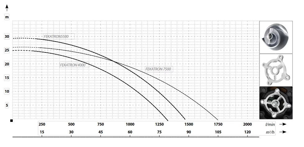 Погружной фекальный насос MAXPUMP FEKATRON 4000 широко используется в отводе сточных вод, канализационных системах и частных строениях. У насоса корпус и крыльчатка изготовлены из чугуна, что говорит о высокой прочности. Крыльчатка насоса MAXPUMP FEKATRON 4000 разработана для достижения большого напора и высокой производительности. В насосе установлен профессиональный измельчитель. Производительность насоса в максимальном значении 78 м³/час, а напор в максимальной точке 25 м. Насос работает на базе трехфазного двигателя мощностью 4000 Вт, 2900 об/мин, 380 В/50 Гц, IP 68.