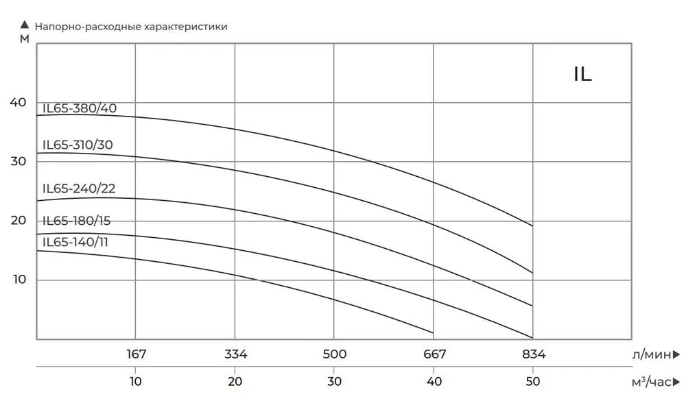 Графические характеристики циркуляционного насоса MAXPUMP IL 65-240/22