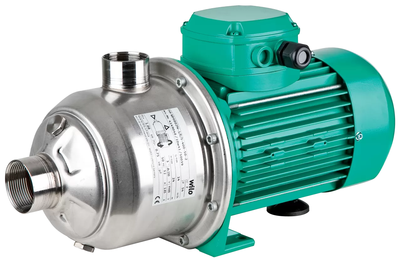 Поверхностный насос WILO MHI 206-1/E/1-230 - многоступенчатый нормальновсасывающий горизонтальный высоконапорный центробежный насос блочного типа с горизонтальным всасывающим и вертикальным напорным патрубком. Данный насос имеет компактную конструкцию и оснащен сквозным насосным валом электродвигателя и не зависящим от направления вращения скользящим торцовым уплотнением.