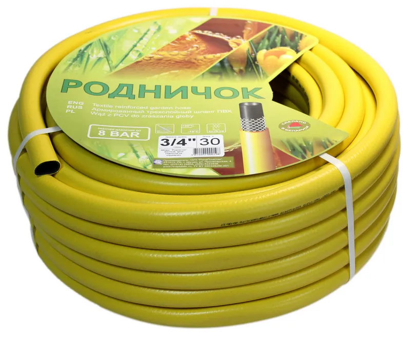 Шланг ПВХ поливочный армированный Родничок 3/4" 10м (желтый)