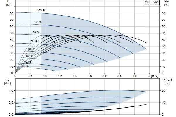 Графические характеристики Grundfos SQЕ 3-65 кабель 40 метров