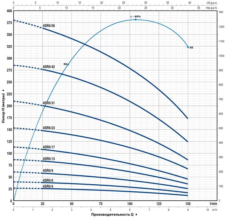 Глубинный насос Pedrollo 4SR6/31-P, отличается объективной ценой и надежной работой всех исполнительных механизмов. Насос Pedrollo 4SR6/31-P достаточно простой в эксплуатации и обслуживании, поэтому отлично подходит как для домашнего, так и промышленного применения.В основе работы Pedrollo 4SR6/31-P лежит конструктивно простой, но функционально успешный многоступенчатый центробежный принцип. Электрический двигатель подключается к агрегату через суппорт, в соответствии с нормативами международного стандарта NEMA. Мощность электродвигателя насоса составляет 4000 Вт . И при таких показателях мощности насос обладает максимальным напором в 210 метров и максимальной производительностью 9 м3/час. Функционирование Pedrollo 4SR6/31-P идентично большинству устройств, основанных на центробежных механизмах подачи воды. Жидкость втягивается в корпус устройства благодаря центробежной силе, создаваемой рабочими колесами, которые также проталкивают воду через все тело насоса "диаметр насоса 4"", а затем в нагнетающий патрубок "диаметр патрубка 2"", через который вода и попадает к конечному потребителю. Главной особенностью насоса Pedrollo 4SR6/31-P является малый диаметр корпуса агрегата, а также то, что перекачиваемая вода не касается стенок двигателя. Между жидкостью и корпусом движущей установки располагается прослойка из технологического масла, которая и предотвращает попадание мелких частиц непосредственно в исполнительный механизм. В то время как охлаждение электропривода происходит за счет верхнего способа забора воды, т.е. перекачиваемая жидкость находится всегда выше уровня расположения двигателя. Насос питается от сети в 380 в и комплектуется кабелем 1.5 метров.