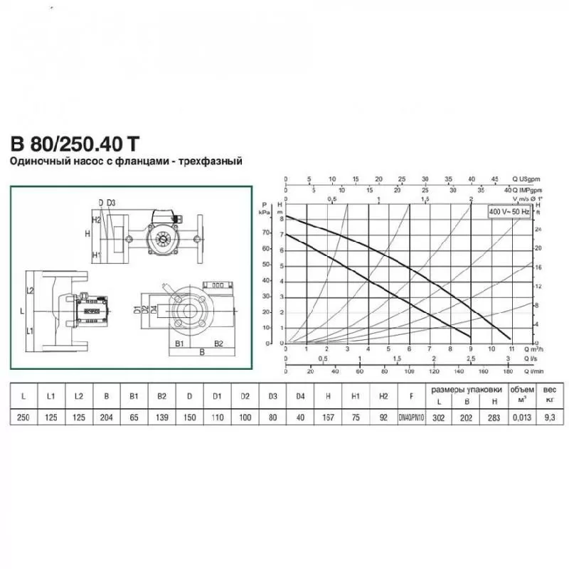 График характеристик циркуляционного насоса DAB B 80/250.40 T - 400 v">
