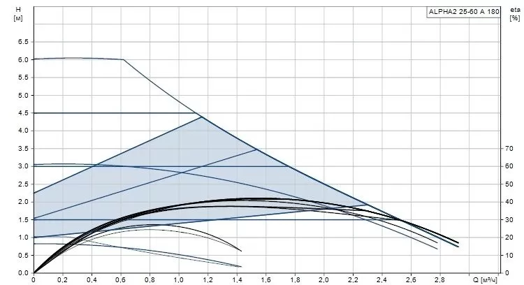 Циркуляционный насос Grundfos ALPHA2 25-60 A NEW используюеся для циркуляции воды или гликольсодержащих жидкостей в регулируемых системах отопления и в системах отопления с переменным расходом. ALPHA2 NEW оснащены 10 режимами управления: 3 режима фиксированной скорости, 3 режима пропорционального давления, 3 режима постоянного давления и наиболее энергоэффективный режим для работы в контуре с радиаторами: режим AUTOADAPT.