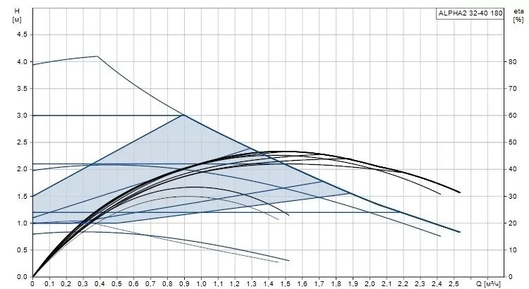 Циркуляционный насос Grundfos ALPHA2 32-40 N используется для циркуляции воды или гликольсодержащих жидкостей в регулируемых системах отопления и в системах отопления с переменным расходом. ALPHA2 NEW оснащены 10 режимами управления: 3 режима фиксированной скорости, 3 режима пропорционального давления, 3 режима постоянного давления и наиболее энергоэффективный режим для работы в контуре с радиаторами: режим AUTOADAPT.