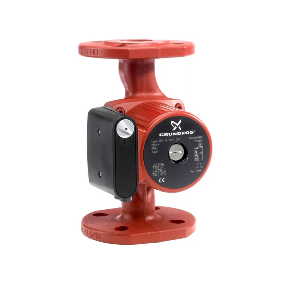 Циркуляционный насос Grundfos UPS 40-50 F используется для циркуляции воды или гликольсодержащих жидкостей в системах отопления и кондиционирования. Насос оснащен электродвигателем с мокрым ротором и защищенным статором, без сальниковых уплотнений, с двумя уплотнительными кольцами. Подшипники смазываются перекачиваемой жидкостью.