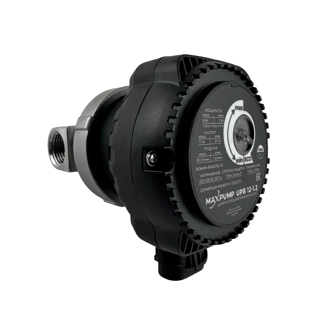 MAXPUMP UPB 12-1.2 оснащен поворотной ручкой для настройки мощности. Вы можете выбрать нужный режим работы насоса вручную или включить автоматический режим ECO, который обеспечивает оптимальный баланс между производительностью и экономией.