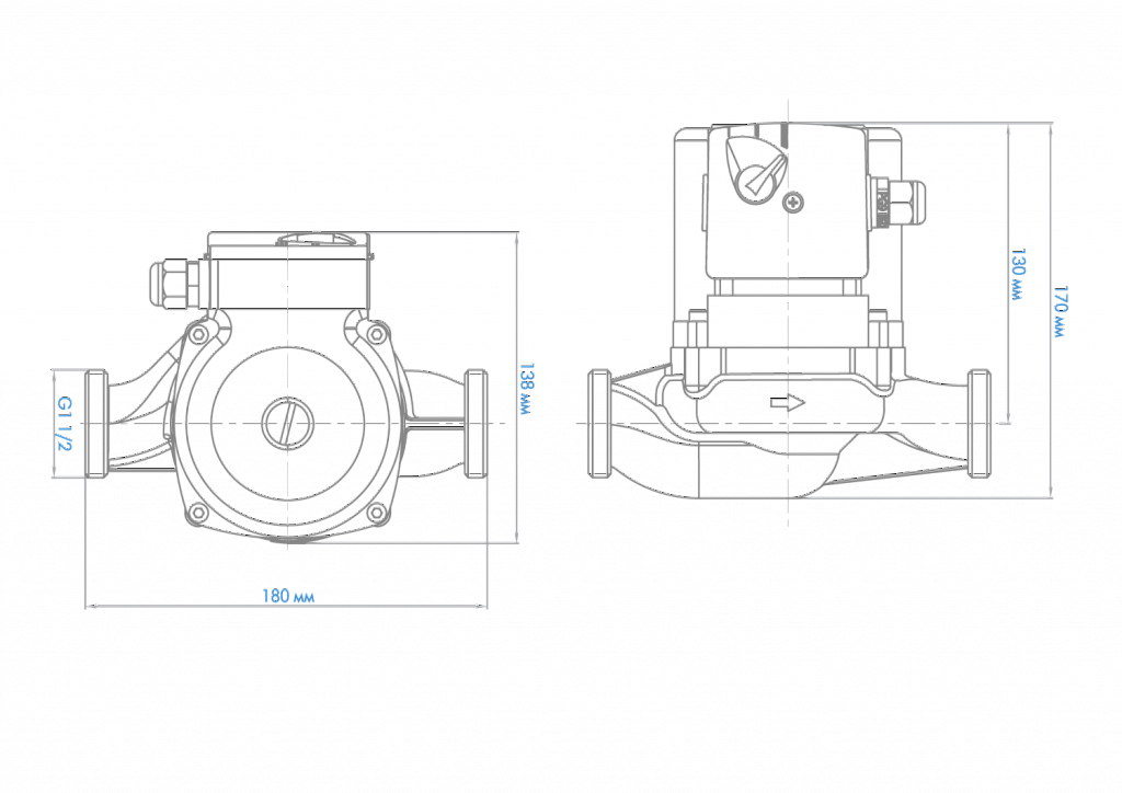 - Установочный размер между присоединительными фланцами — 180 мм.